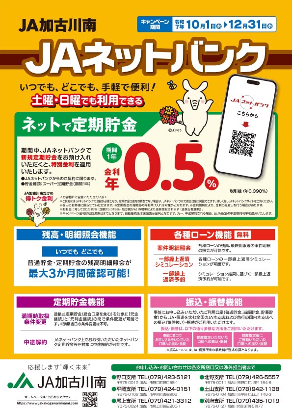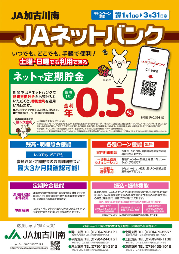JA加古川南ではJAネットバンク専用の定期貯金の特別金利プランをご用意しています。