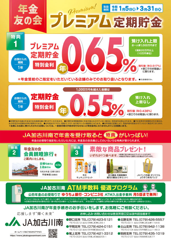 年金のお受け取りはお近くのJA加古川南へ!さらに進化したプレミアム定期貯金!