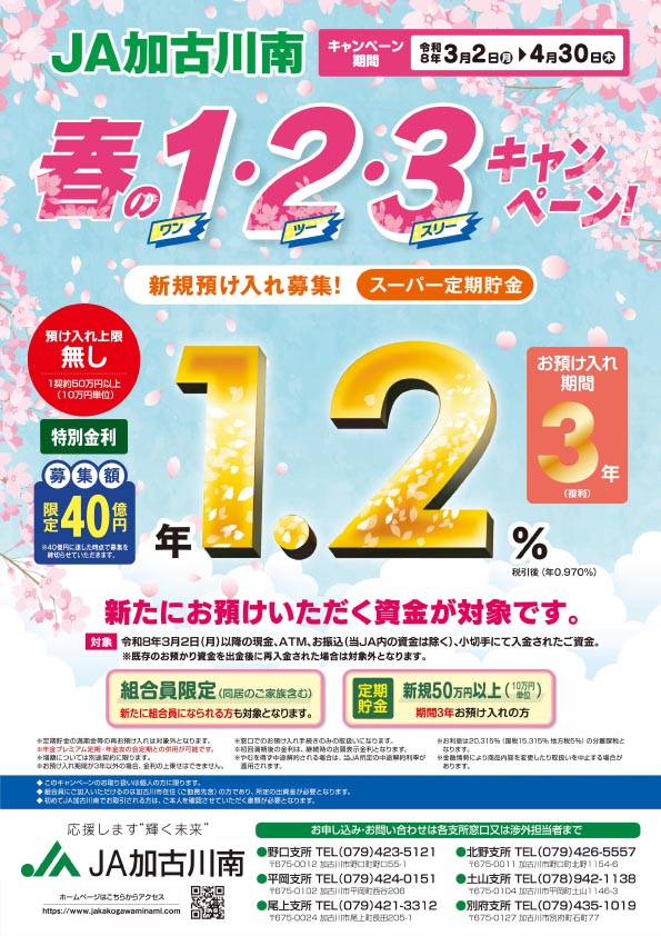 JA加古川南「春の1・2・3キャンペーン」を実施します